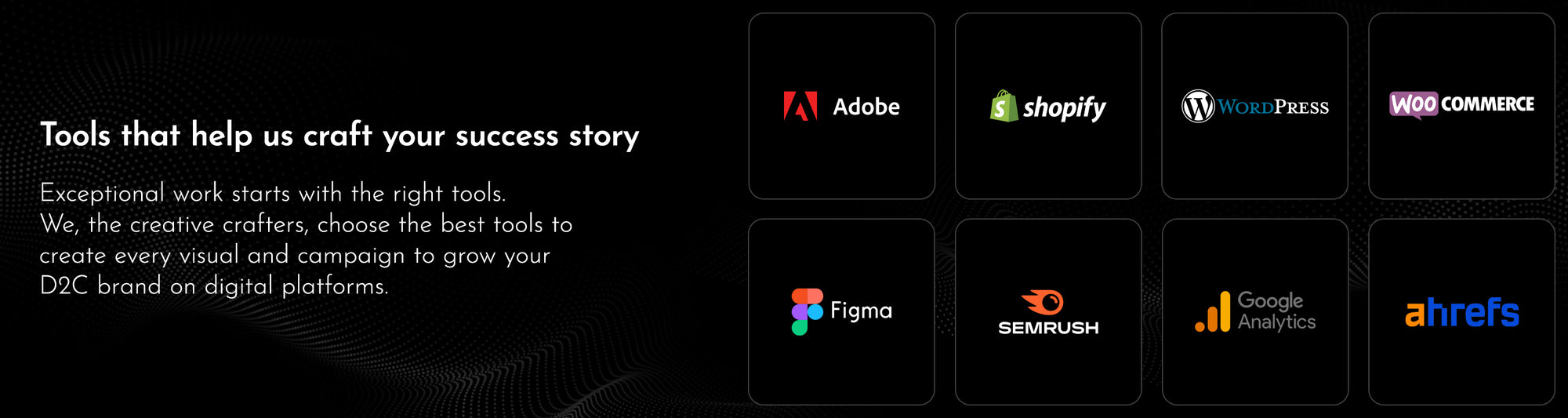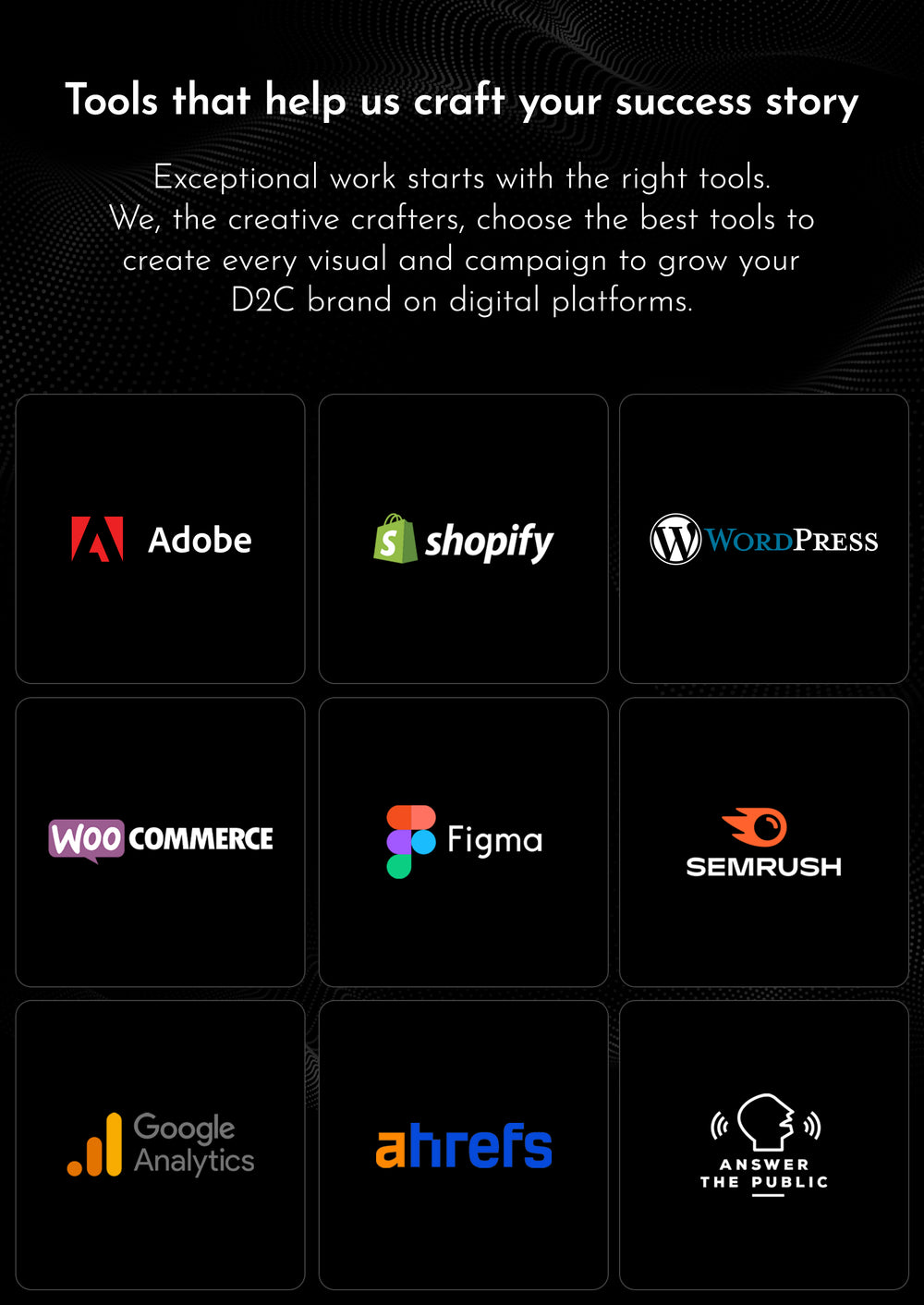 We’re your e-commerce growth partners helping D2C brands scale across digital platforms. With 20+ years of combined experience, our team builds strategies that sell. From design and development to performance marketing, we craft growth for you at every chapter of your brand.